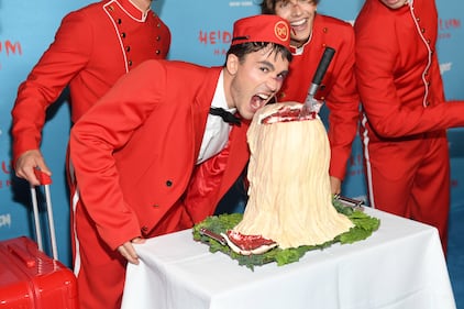 Heidi Klum's 24th Annual Halloween Party presented by Butterfinger and Huluween on Disney+ - Arrivals NEW YORK, NEW YORK - OCTOBER 31: (L-R) Luis Freitag, Tim Schaecker, Julien Brown, Bene Schulz and Jacob Rott of Elevator Boys attend Heidi Klum's 24th Annual Halloween Party presented by Butterfinger and Huluween on Disney+ at Hard Rock Hotel New York on October 31, 2025 in New York City. (Photo by Noam Galai/Getty Images for Heidi Klum Halloween) (Noam Galai/Getty Images for Heidi Klum Hall)