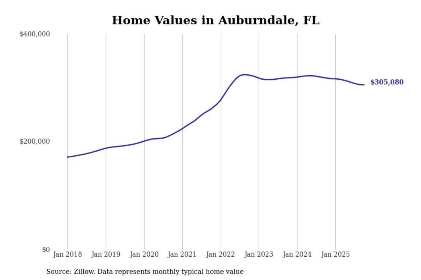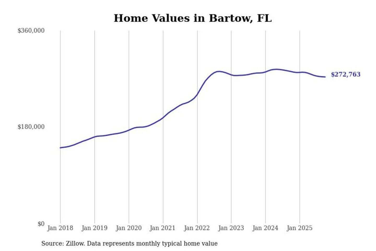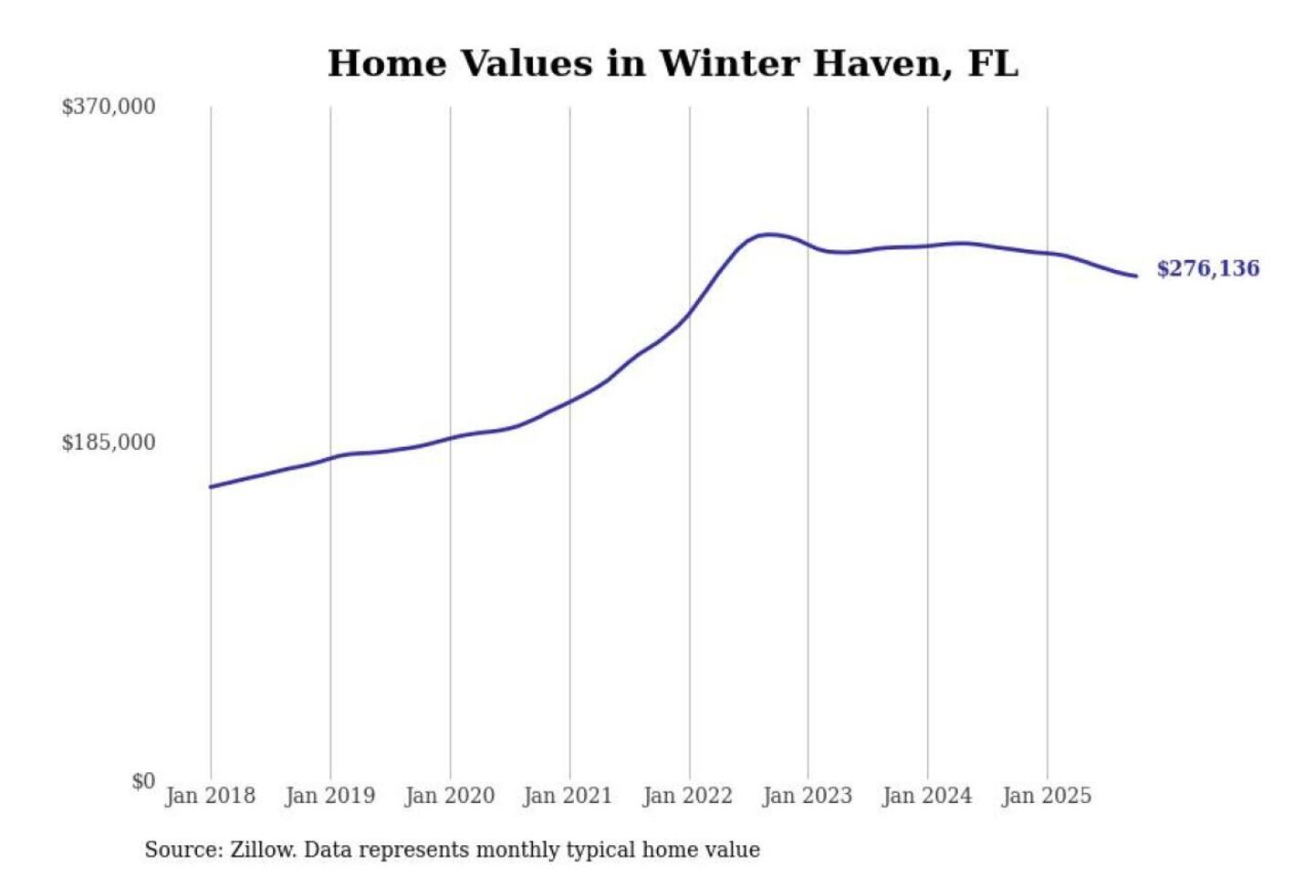 Stacker compiled a list of cities with the most expensive homes in the Lakeland metro area using data from Zillow. Charts show the monthly typical home value since January 2018. All 20 cities and towns with data available were included in the list.