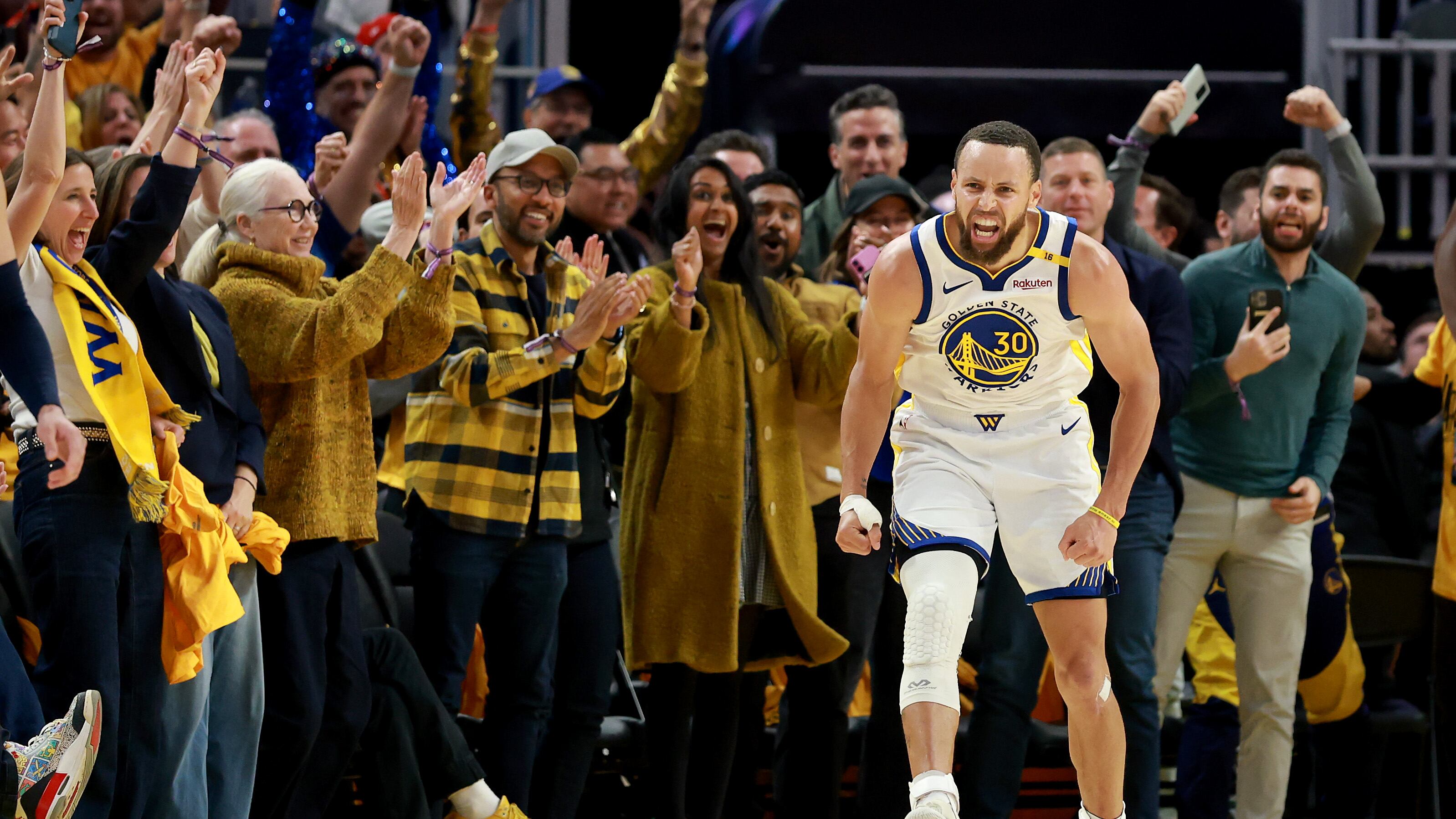 With Golden State clinging to a slim lead, Curry hit two massive 3s, both within the final two minutes, sending the Chase Center crowd into a frenzy.