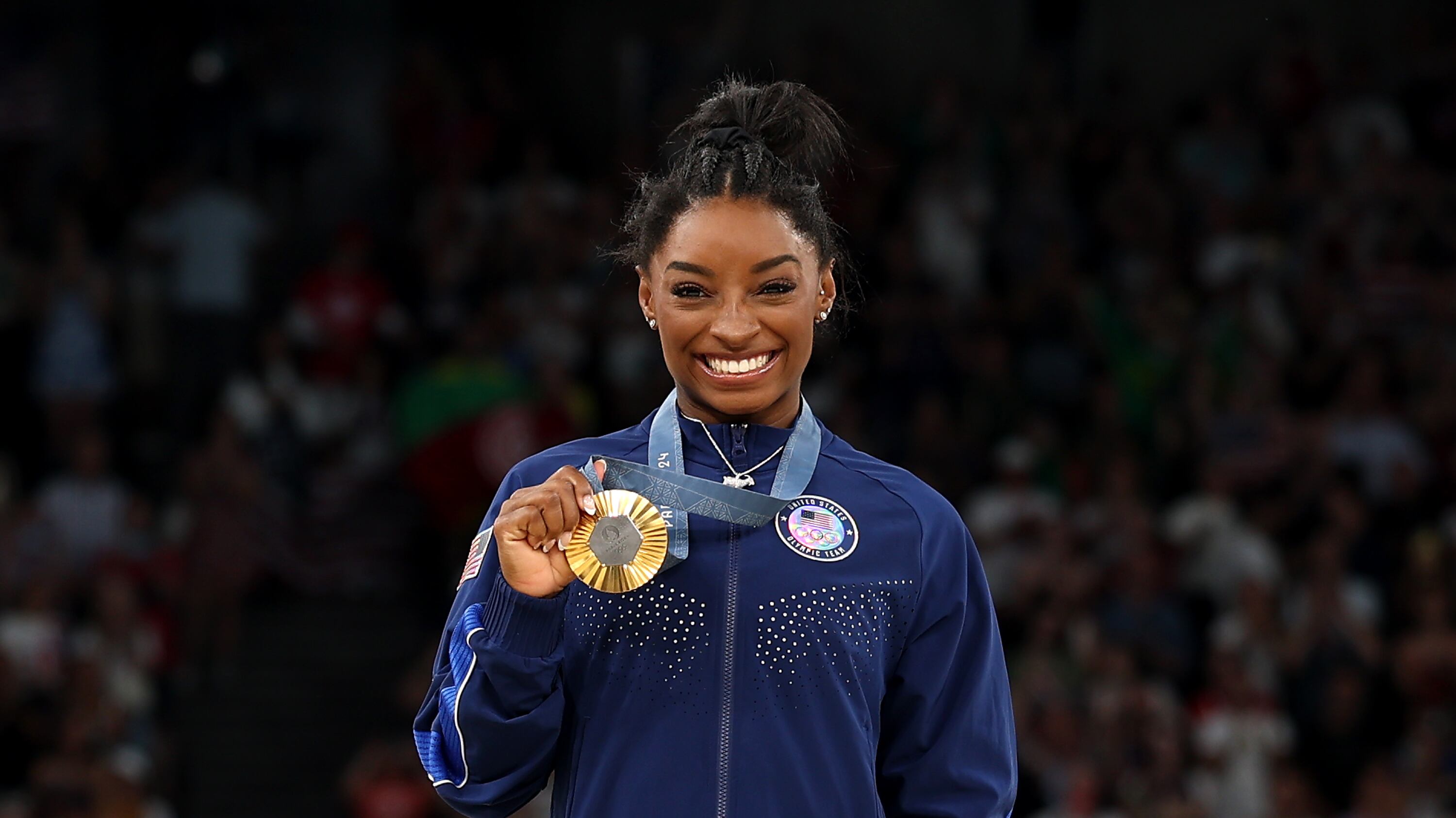 Simone Biles came out on top in Thursday's individual all-around to win her sixth gold medal, the most of any American gymnast.