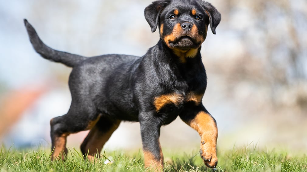 This large, muscular working breed would be a formidable enemy, but its affable, gentle personality makes Rottweilers total cuddle bugs with their owners. The Rottweiler's tough appearance hides a silly side that's hard not to love.