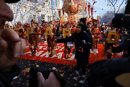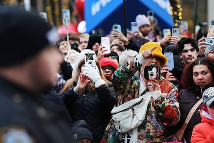 Macy's Thanksgiving Day Parade NEW YORK, NEW YORK - NOVEMBER 27: Crowds watch the 99th Macy’s Thanksgiving Day Parade as it makes its way through Manhattan towards Macy's flagship store on November 27, 2025 in New York City. Celebrating its 99th year, the parade includes marching bands, musical and dance performances, and iconic character balloons. (Photo by Spencer Platt/Getty Images) (Spencer Platt/Getty Images)