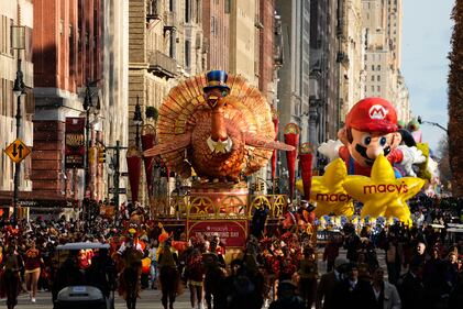 Macy's Thanksgiving Day Parade NEW YORK, NEW YORK - NOVEMBER 27: The Super Mario balloon joins the 99th Macy’s Thanksgiving Day Parade as it makes its way through Manhattan towards Macy's flagship store on November 27, 2025, in New York City. Celebrating its 99th year, the parade includes marching bands, musical and dance performances, and iconic character balloons. (Photo by Spencer Platt/Getty Images) (Spencer Platt/Getty Images)