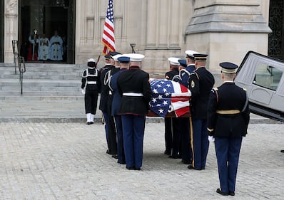 Dick Cheney funeral: Military body bearers carry the casket containing the remains of former Vice President Dick Cheney. (Anna Moneymaker/Getty Images)