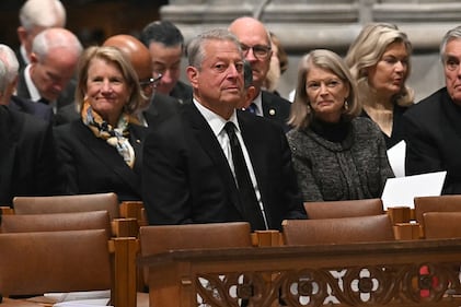 Dick Cheney funeral: Former Vice President Al Gore, center, attends the funeral service for Dick Cheney. (SAUL LOEB/AFP via Getty Images)