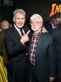 U.S. Premiere of Indiana Jones and the Dial of Destiny LOS ANGELES, CALIFORNIA - JUNE 14: (L-R) Harrison Ford and George Lucas attend the Indiana Jones and the Dial of Destiny U.S. Premiere at the Dolby Theatre in Hollywood, California on June 14, 2023. (Photo by Charley Gallay/Getty Images for Disney) (Charley Gallay/Getty Images for Disney)