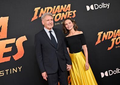 U.S. Premiere of Indiana Jones and the Dial of Destiny HOLLYWOOD, CALIFORNIA - JUNE 14: Harrison Ford and Calista Flockhart attend the Los Angeles Premiere of LucasFilms' "Indiana Jones and the Dial of Destiny" at Dolby Theatre on June 14, 2023 in Hollywood, California. (Photo by Axelle/Bauer-Griffin/FilmMagic) (Axelle/Bauer-Griffin/FilmMagic)