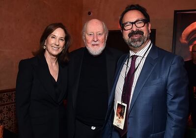 U.S. Premiere of Indiana Jones and the Dial of Destiny LOS ANGELES, CALIFORNIA - JUNE 14: (L-R) Kathleen Kennedy, President, Lucasfilm, John Williams, and James Mangold attend the Indiana Jones and the Dial of Destiny U.S. Premiere after party at The Hollywood Roosevelt in Hollywood, California on June 14, 2023. (Photo by Alberto E. Rodriguez/Getty Images for Disney) (Alberto E. Rodriguez/Getty Images for Disney)