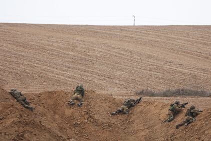 Israel retaliates: Israeli soldiers take up positions near the Israel-Gaza border. (picture alliance/dpa/picture alliance via Getty I)