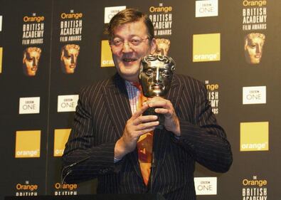 Through the years LONDON, ENGLAND - FEBRUARY 05: Stephen Fry poses on stage with a BAFTA mask ahead of the British Academy Film Awards at The Royal Opera House on February 5, 2015 in London, England. The annual BAFTA's will be held on Sunday February 08, 2015. (Photo by Ian Gavan/Getty Images) (Ian Gavan/Getty Images)