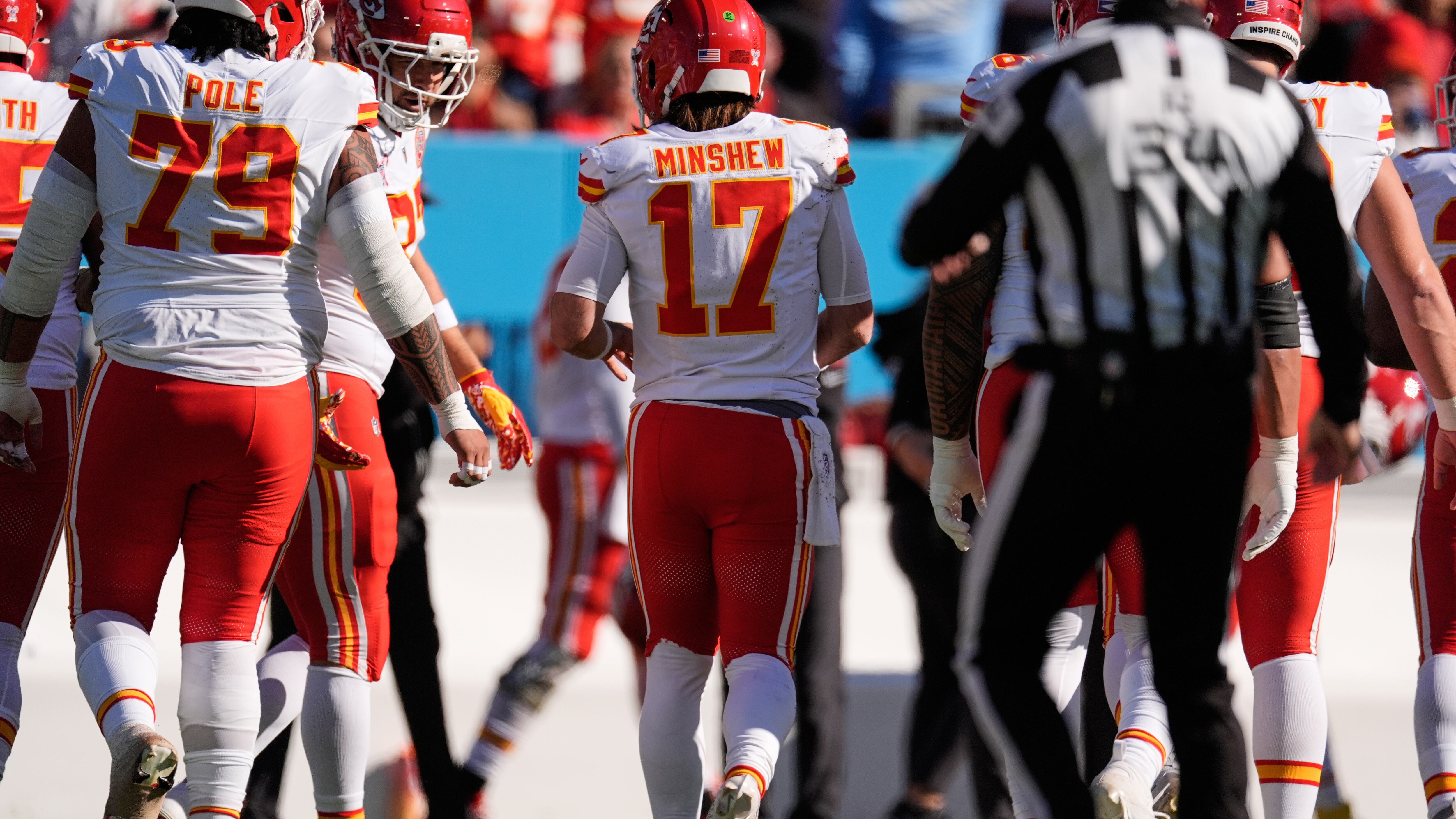 NASHVILLE, Tenn. — Kansas City Chiefs quarterback Gardner Minshew limped off the field Sunday early in the second quarter and never returned.